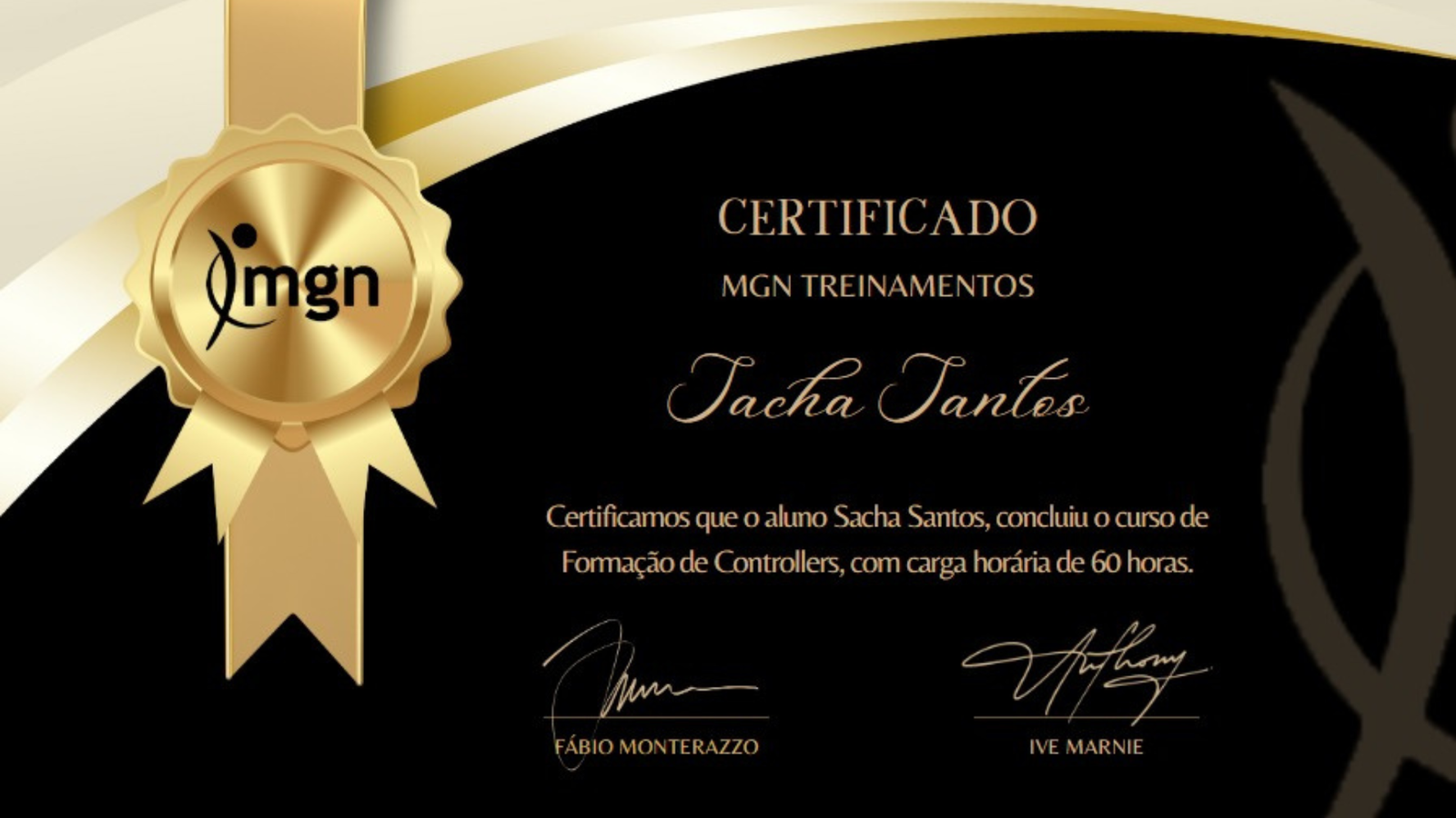 Ao final do Curso de Formação de Controller, você receberá um certificado de conclusão de curso da MGN Treinamentos, centro de referência em treinamentos de executivos.